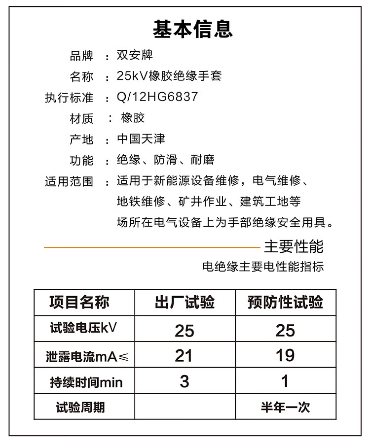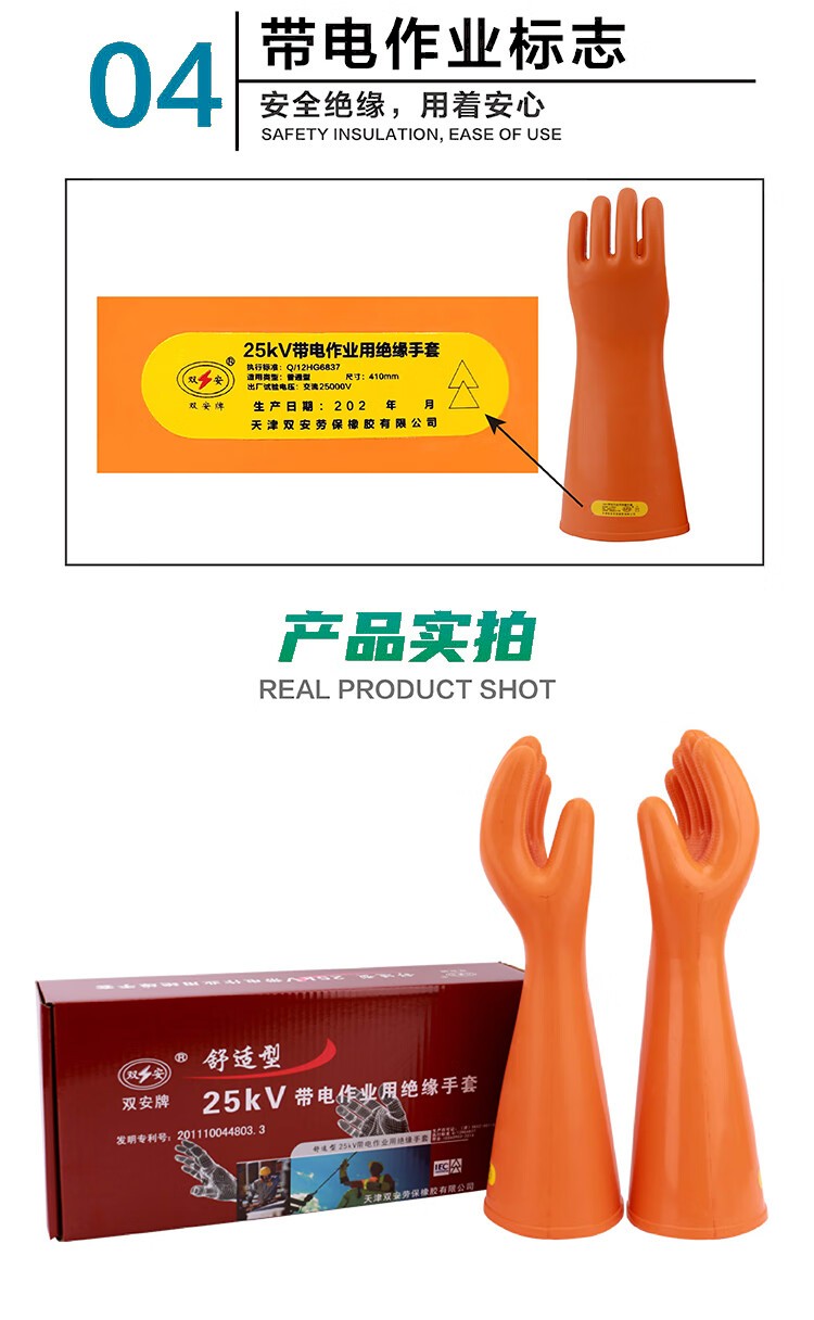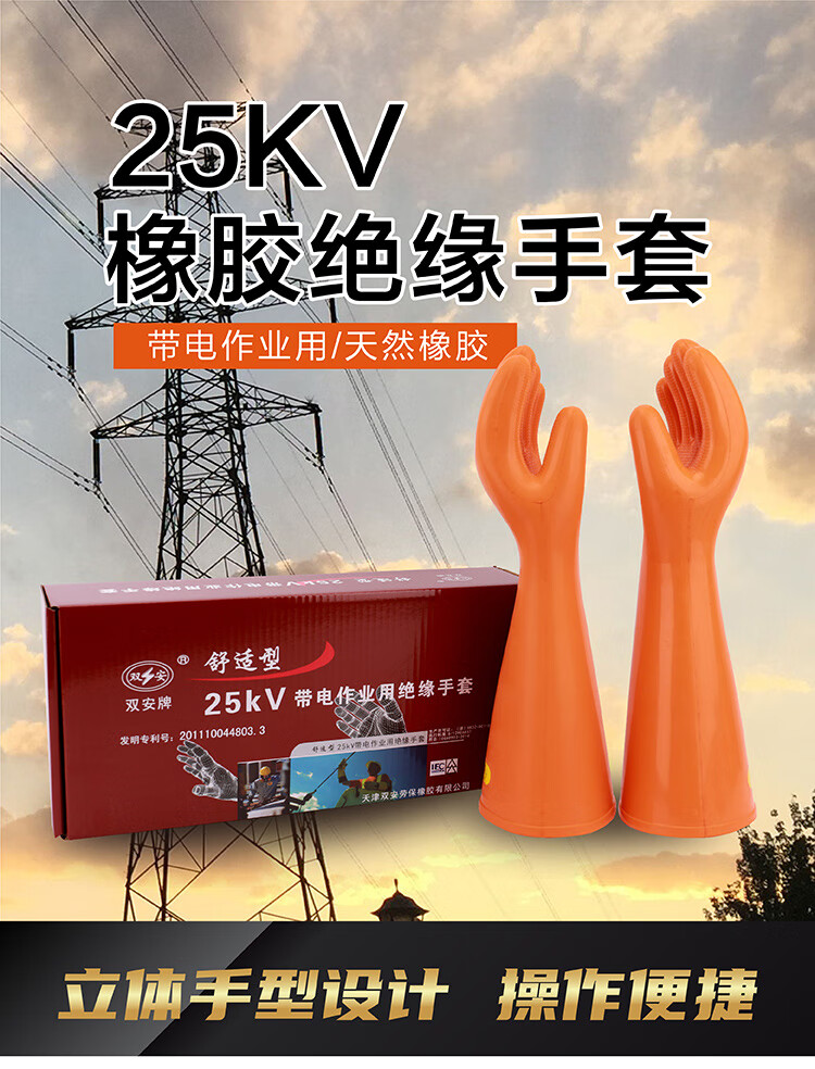 雙安25kv絕緣橡膠手套安全電力防電耐高壓帶電作業(yè)橡膠手套